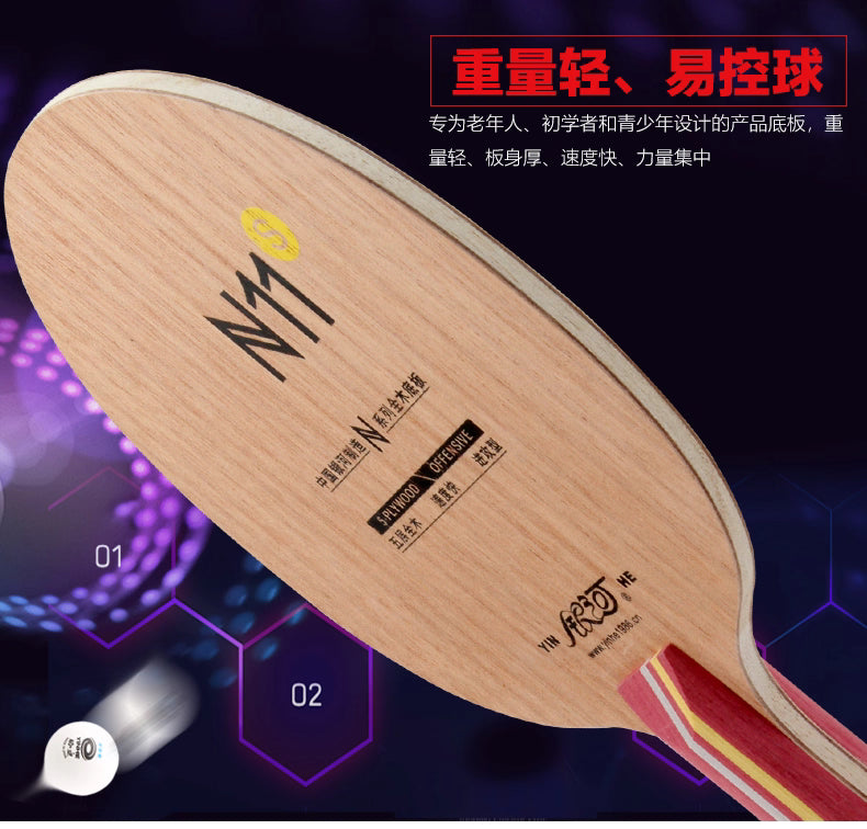 N-11S is a classic pure wood blade designed for developing players who prefer fast attack play with loop-focused technique. The 5-ply construction delivers a balanced combination of speed, stability, and clear feedback, making it easier for beginners to build consistent strokes and proper timing.