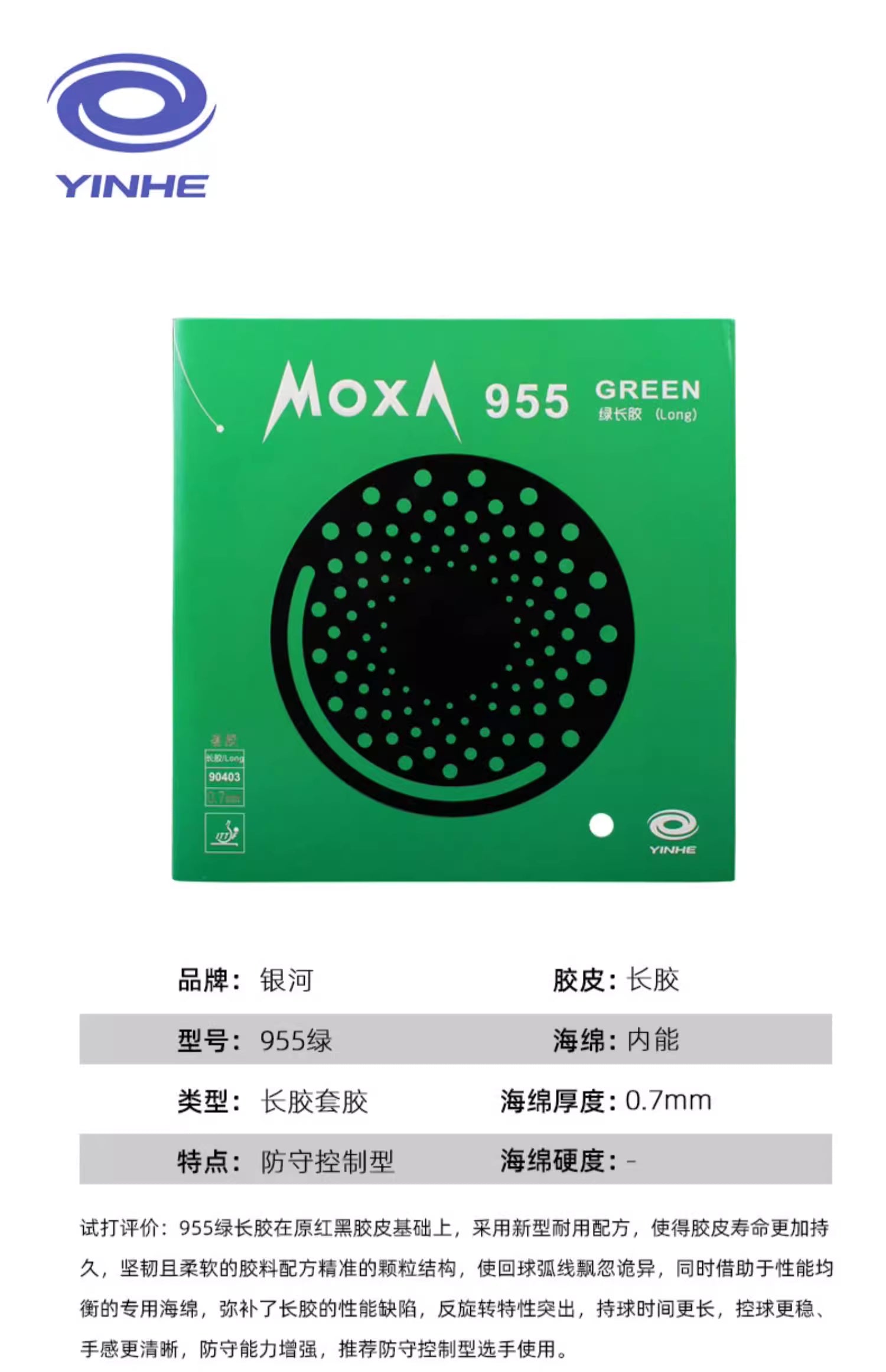 955 Long features pronounced spin-reversal capability thanks to its durable yet flexible topsheet and precisely engineered pip structure. The resulting returns produce drifting, unpredictable trajectories that challenge the opponent’s timing and anticipation.