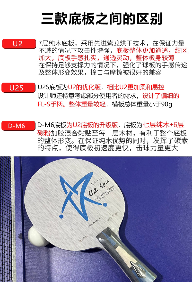 U-2S is ideal for players seeking a well-balanced 7-ply blade that combines solid offensive performance with excellent control, comfort, and confidence-inspiring feel.