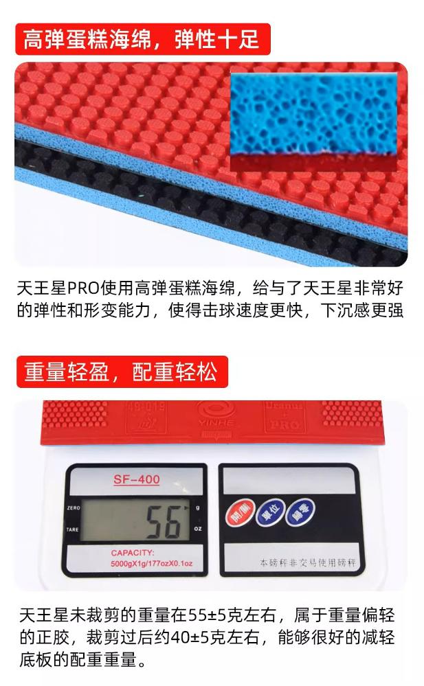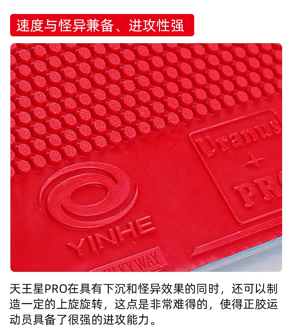 Uranus Pro is a pagoda-shaped pips-out rubber engineered specifically for the modern 40+ poly ball. It delivers a strong sinking effect and powerful built-in energy rebound. The soft, elastic sponge increases contact area and boosts rebound force, while enhancing precision in shot placement.